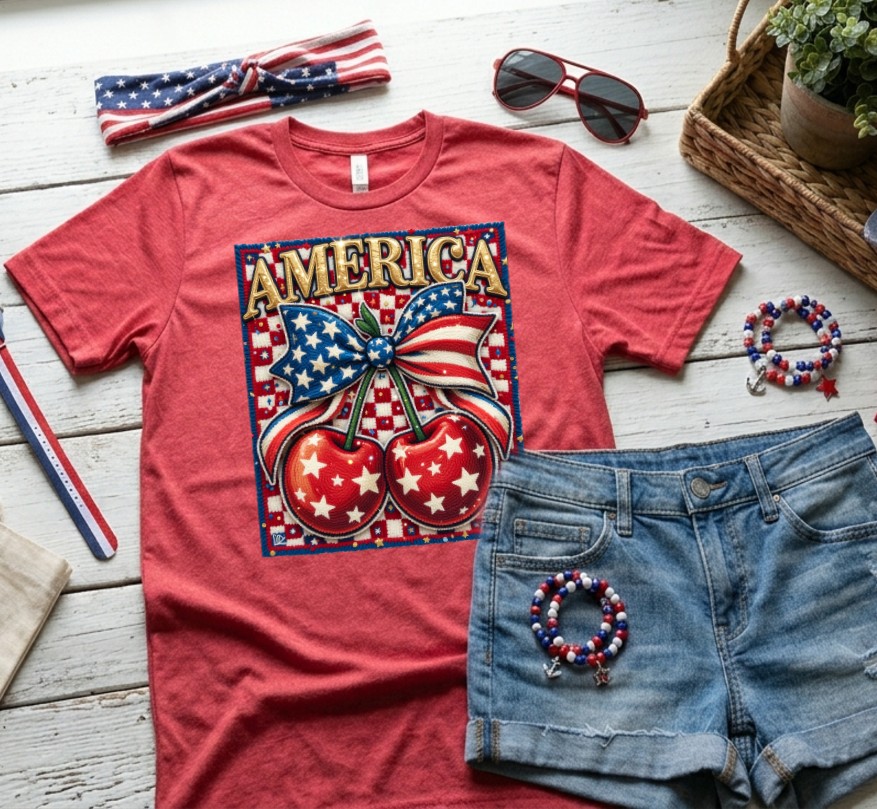 Celebrate the USA and 250 years with this patriotic cherry red white and blue t shirt