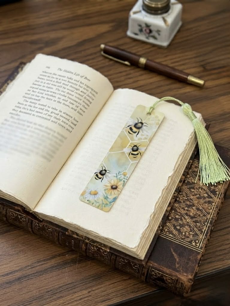 | 5.9″L x 1.26″W metal bookmarks your tassles maybe a different color than shown both sides of the bookmark are done with the design shown. |