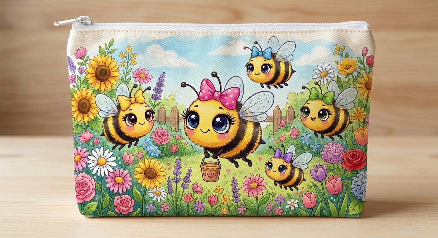 This charming “Garden Party” canvas pouch is the perfect blend of whimsy and utility. Featuring a vibrant, high-quality print of adorable honeybees, this accessory adds a splash of joy to your organization.