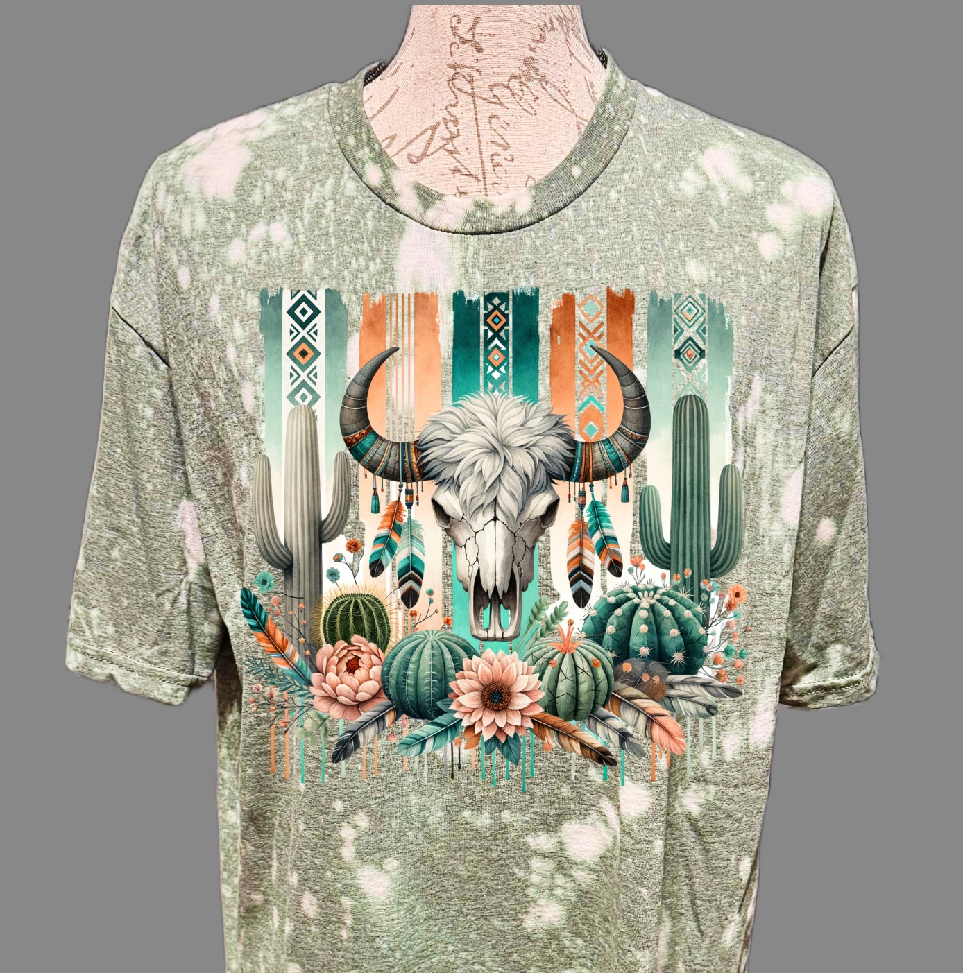 cactus skull bleached t shirt