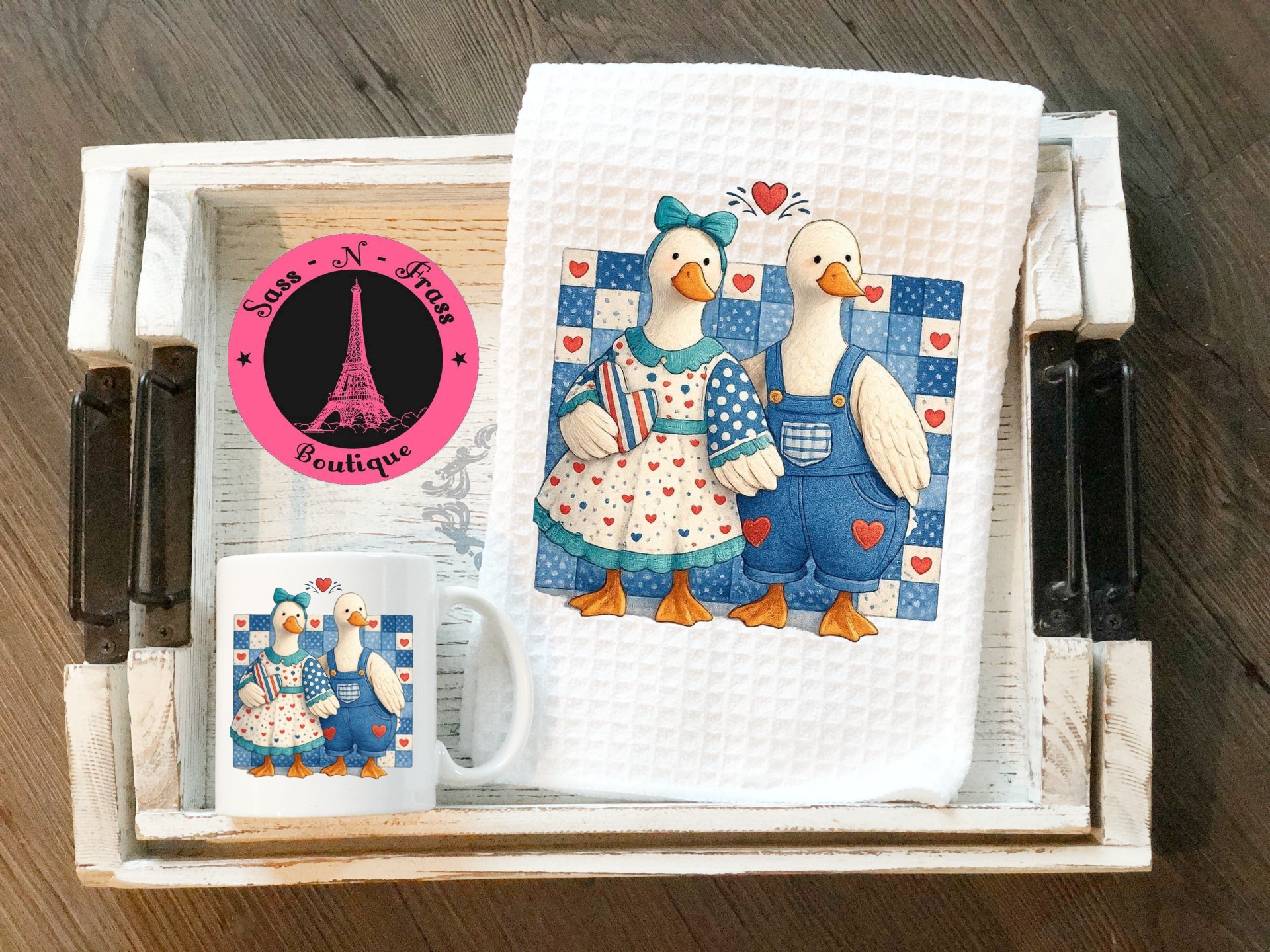 The ultimate 90s throwback! This little love geese screams retro decor. If you grew up with these geese in your mommas or grandmas kitchen you know the vibes! Don’t skip grabbing this set. Let all the feelings pour out and go into your era throwbacks. Super absorbent towel 16×24. 12 oz mug. This set says grab me and love me!
