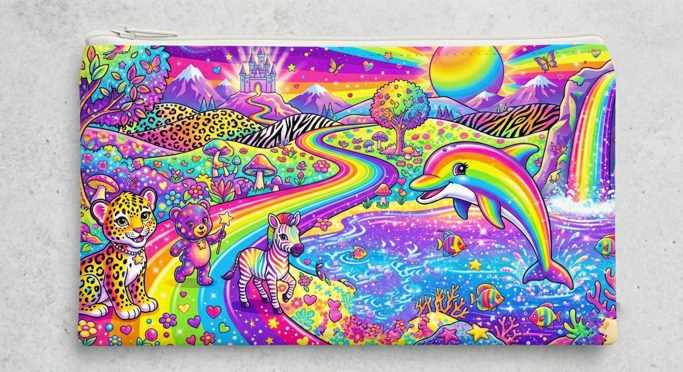 Hardware: Matching white zipper at the top.