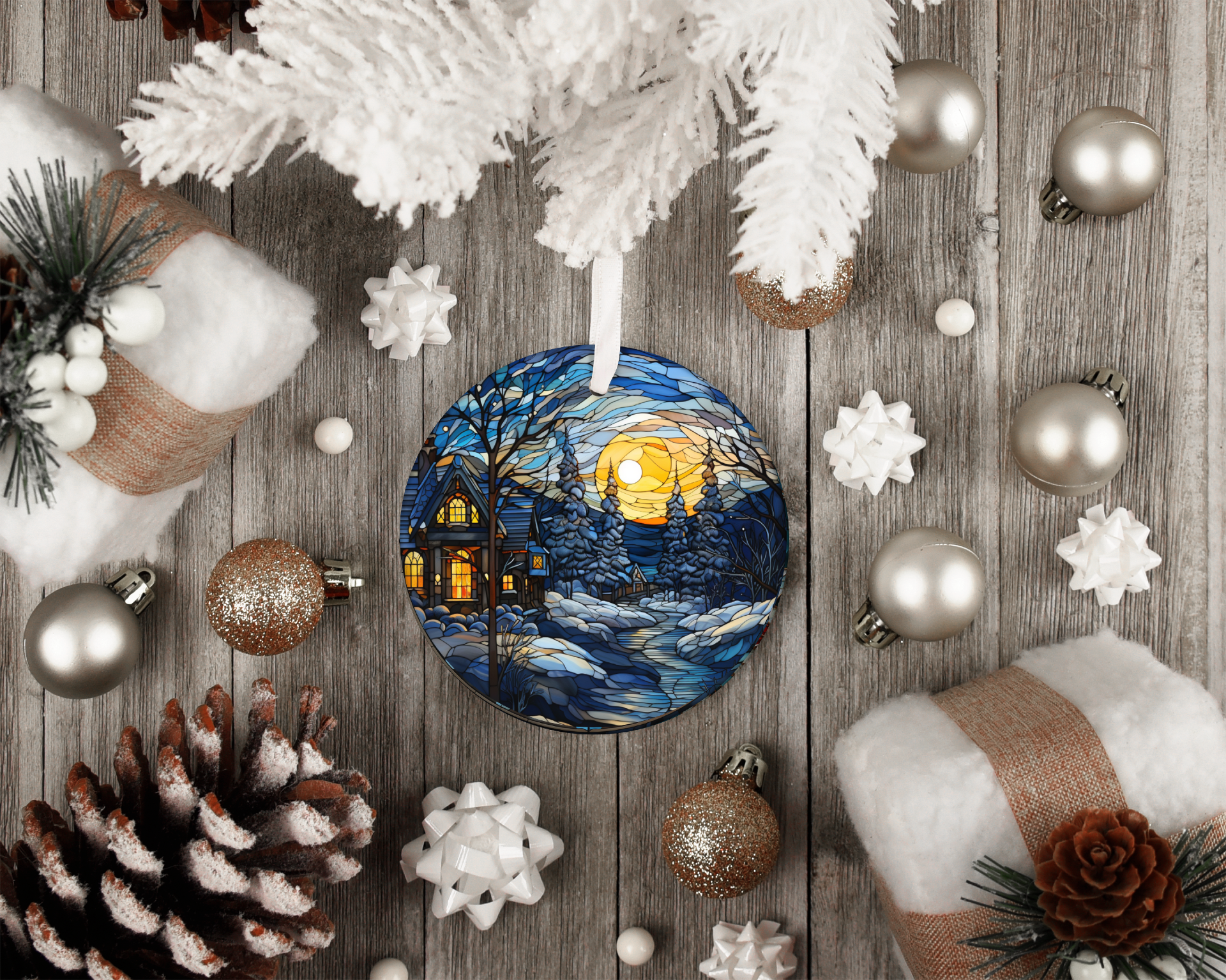 snowy night ornament