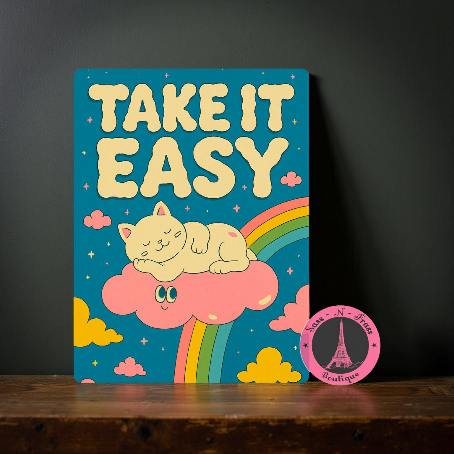 take it easy metal sign