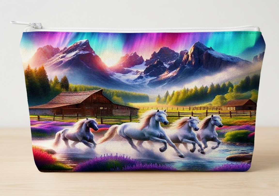 This eye-catching canvas accessory bag blends functional design with a breathtaking, ethereal aesthetic. Perfect as a high-end cosmetic case, a travel organizer, or a statement clutch, it features a vibrant wrap-around print that brings a touch of magic to your daily essentials.