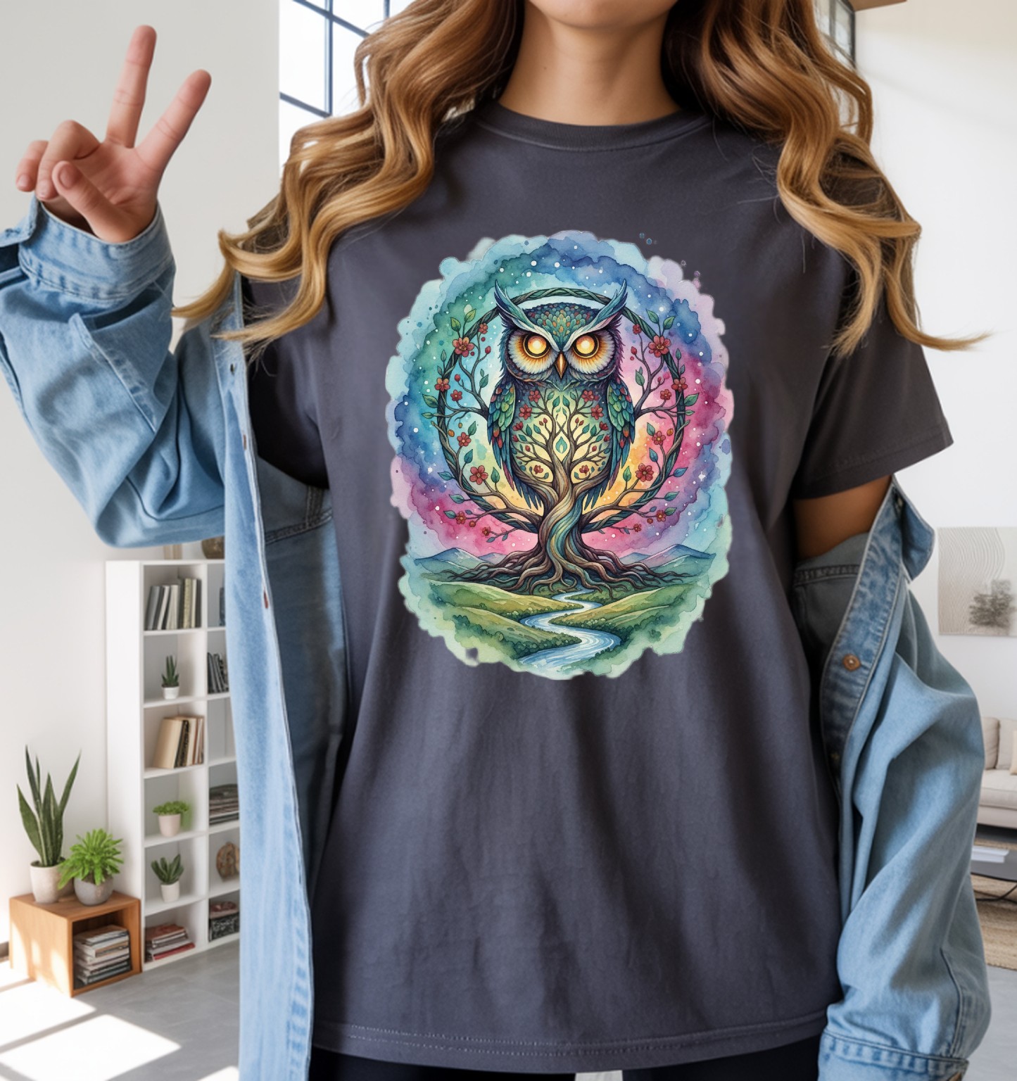 Celestial Owl & Tree of Life Watercolor T-Shirt